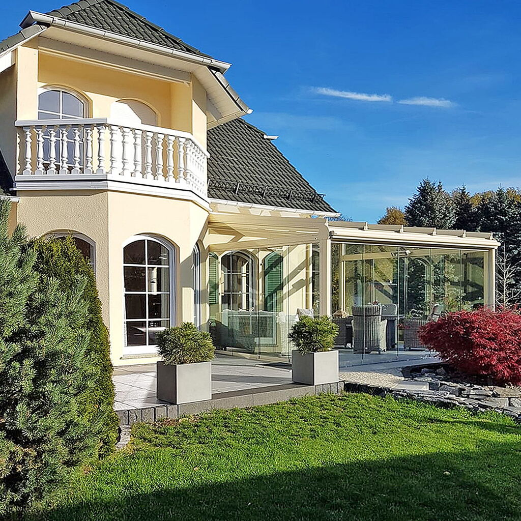 Terrassendächer gewinnen zunehmend an Beliebtheit. Der Hauptgrund dafür liegt in der Möglichkeit, sich weitgehend von den wechselnden Witterungsbedingungen unabhängig zu machen. Dadurch kann die Terrasse deutlich intensiver und häufiger genutzt werden. Zudem trägt ein qualitativ hochwertiges Terrassendach, das stilistisch zum Haus passt, zur Wertsteigerung der Immobilie bei und stellt somit eine interessante Investition für Hausbesitzer dar. Unser Unternehmen verfügt über umfangreiche Erfahrung in der Entwicklung und Konstruktion von Verglasungen, insbesondere im Bereich der Terrassenüberdachungen, und bietet ein vielfältiges Sortiment an hochwertigen Markenprodukten.